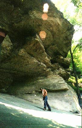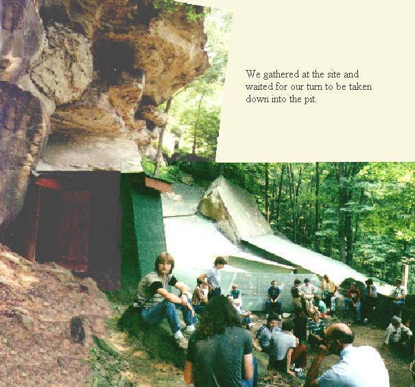 We visited this site with the Carnegie Museum. About 40 of us bussed to Avella, where we were met by Dr. Adavasio. He explained the importance of this site, and something about the Paleo-Indians who had used the shelter. He explained that this had never been a permanent settlement. This site was located on an important route westward. The Paleo-Indians stuck to the river paths. They stayed a week or two at the most. Thus there are no burials, no human remains, no permanent fixtures to be found. Adavasio's team found evidence of fires, pieces of basketry and woven mats, animal bones, and spear and arrow points and the shards of rock left when the points were being made. In later layers they also found pieces of pottery. |