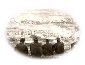 ![]() The regiment went into camp at Brattleboro, VT on 25 Sept. 1862 and was mustered into the U.S. service on Oct. 4 and left for the field on Oct. 7. It went into camp on Capitol Hill, Washington, on Oct. 10, being attached for three weeks to Derrom's Brigade of Casey's Division. On Oct. 30, the 12th moved to Virginia's Munson's Hill. The following day it went to Hunting Creek. The regiment remained at "Camp Vermont" near Hunting Creek until Dec. 12, 1862. While there, they successfully defended against the attmpt by Gen J.E.B. Stuart's cavalry to capture the supplies and garrisons at Fairfax Court House.