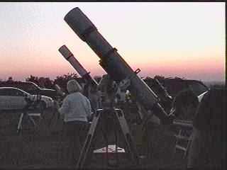 Our group went on a warm, clear night in June. A couple of phone calls, the group assembled and caravaned our way into the far north hills. It wasn't easy and we strongly recommend you download the map. We brought lawn chairs, commestables, and binoculars, and sat and watched as the sky darkened and the stars began to appear. Children ran in the darkening grass, adults clustered around the telescopes. Several talks were given behind the observatory, acquainting new comers with the night sky. We had a wonderful evening, learning something new, making new friends. We saw Mercury, naked eye, a rarish event we were told. And a satellite, not so rare for those who look upward. |