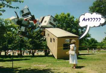 | The year was 1988. In Point State Park, Tippi encountered this assemblage of ?? stuff hanging in some trees. Was it art or was it junk? Was the artist trying to say that junk was art, or was it the other way around? |