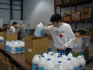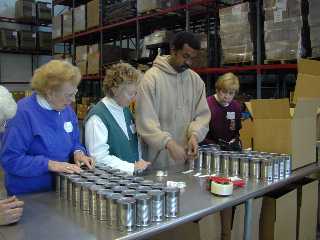 As this food comes in, it must be inventoried and sorted. Some food comes in large quantity containers and must be broken into smaller units. This is all hand work, and for this hand work the food bank relies on volunteers.The volunteers come in all ages and abilities. The minimum age is 12. School groups, handicapped groups, senior citizens are all counted among the Food Bank volunteers. Last year, over 7,000 volunteers donated 39,000 hours of their time. There is a very strictly kept inventory of all foodstuffs in the warehouse. The inventory is placed on a telephone recording and the associated agencies call in each week to see what is available. They then make their orders up from this inventory and phone it in. Workers at the food bank fill the order and take it to the loading dock where it is picked up the next morning.