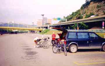![]() We had been in the habit of biking early on Saturday mornings on the Yough trail, Boston to Greenock to the cemetery to Buena Vista and back again. By September, we began to think, "same old, same old, same old". It was time to search out a new trail. Marie thought she knew where to find the trail head to the downtown Eliza Furnace Trail -- somewhere near the new jail, she thought. So there we were, luckily early when there was little traffic, bobbling around downtown in a section of narrow streets, dead ends and one ways. And then we found it - the start of the trail, a parking lot - metered at 15 minutes per quarter. Between us we had 8 quarters, good for an hour each car. That would never do. Marie set out on foot and soon was back, she'd found an unmetered lot! Again we set out, and eventually came to the entrance of that lot - just after the 10th St. Bridge turn off on 2nd Ave. It was a pay-for lot, $2 each car for all day parking. Luckily, we had the dollar bills.